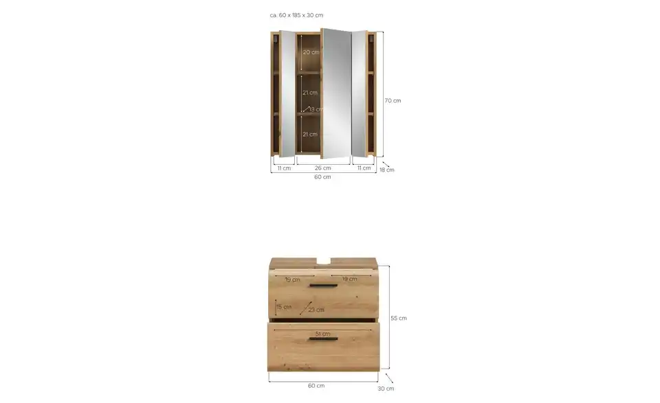 - Bestehend aus1x WBU, 1x Spiegelschrank