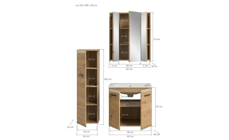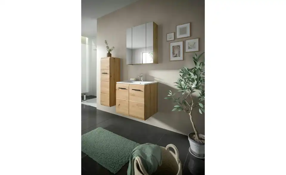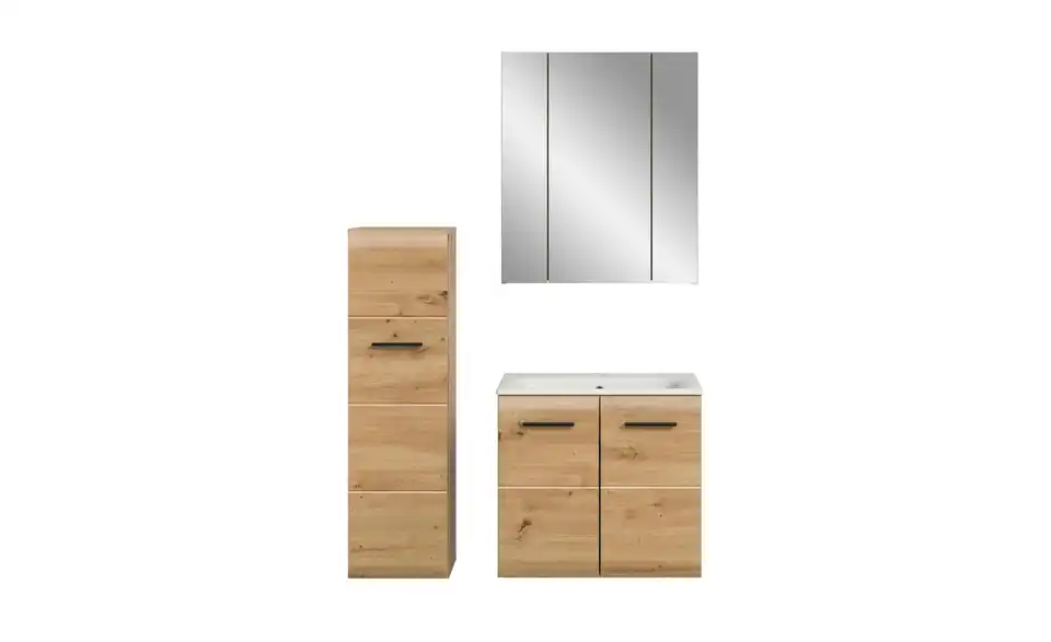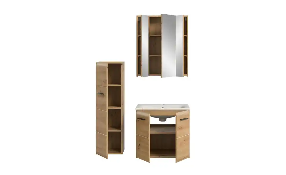 - Bestehend aus1x Stauraumtype, 1x Waschtisch inkl. Waschbecken, 1x Spiegelschrank