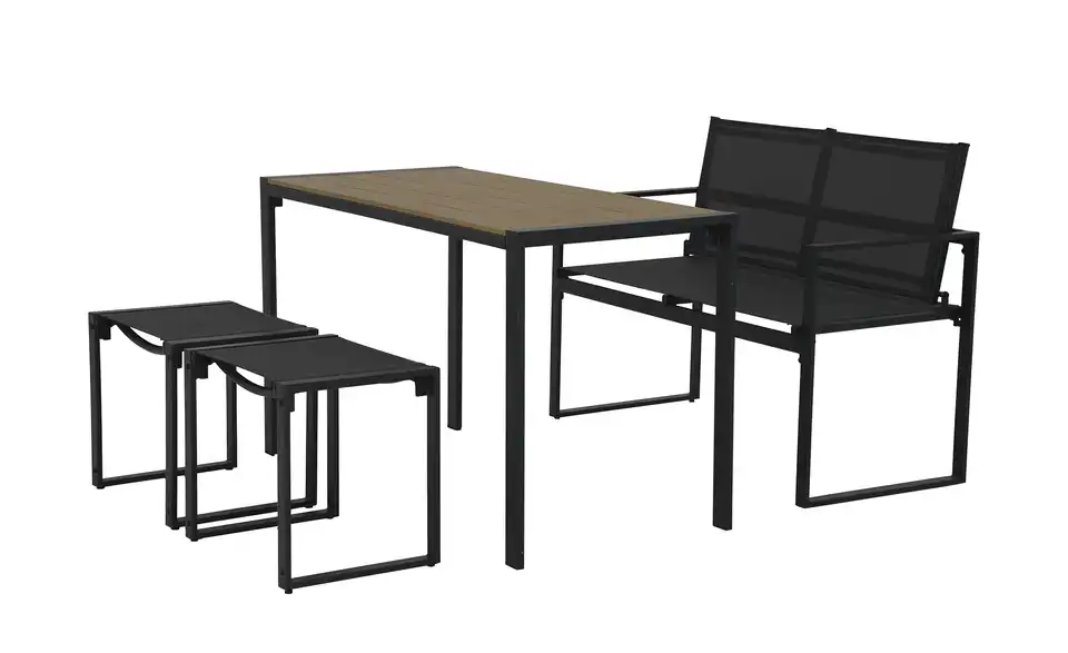- Mehr zu Maßen2er-Bank ca.113x56x86cmHocker ca.50x40x44cmTisch ca.125x60x74cm