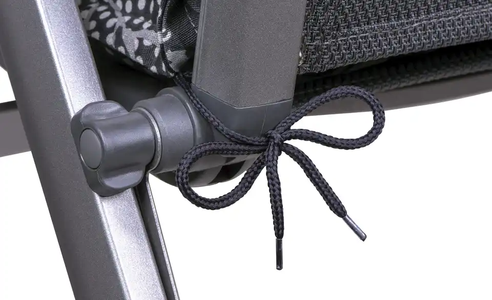 - Mehr zu AusführungStehsaumauflage mit verstellbarem Gurtband, seitliche Bindekordeln und Kreissteppung im Lehnenrücken