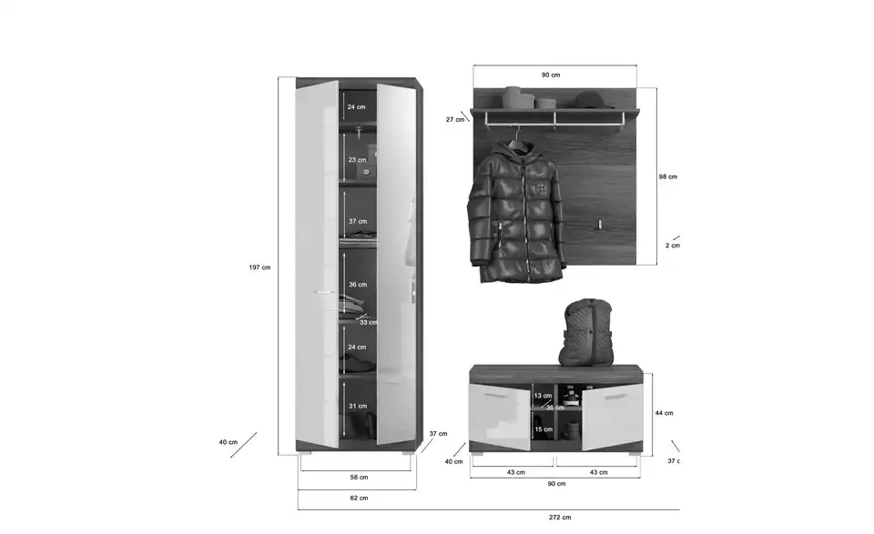 - Farbe / Dekor sichtbare RückwändeWeiß