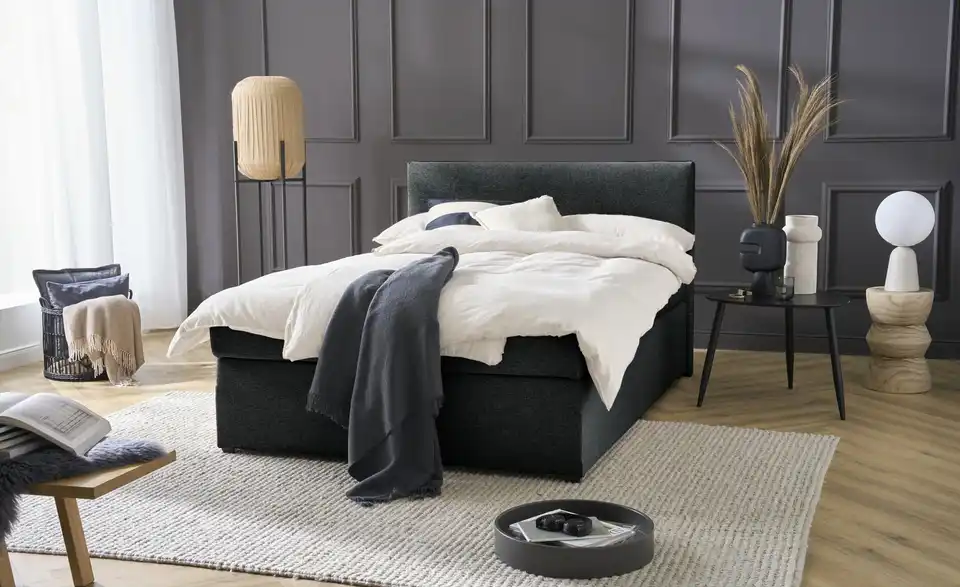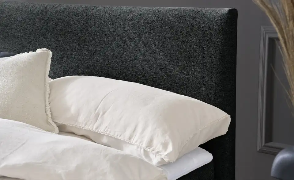 Im Boxspringbett Carlo erwarten Sie erholsame Nächte. Das Bett ist mit einem unempfindlichen, anthrazitfarbenen Flachgewebe bezogen und lässt sich dadurch gut mit anderen Möbeln kombinieren. Am halbhohen Kopfteil können Sie sich bequem anlehnen. Es ist mit flächenelastischen Bonnellfederkernen ausgestattet. Ein drei Zentimeter dicker Topper mit Schaumstoffkern ist im Lieferumfang enthalten.Lieferung & Versand
