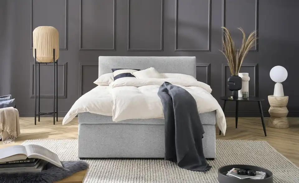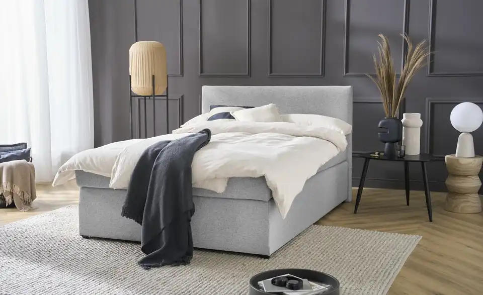 Im Boxspringbett Duke erwarten Sie erholsame Nächte. Das Bett ist mit einem unempfindlichen, Flachgewebe bezogen und lässt sich dadurch gut mit anderen Möbeln kombinieren. Am halbhohen Kopfteil können Sie sich bequem anlehnen. Es ist mit flächenelastischen Bonnellfederkernen ausgestattet. Ein drei Zentimeter dicker Topper mit Schaumstoffkern ist im Lieferumfang enthalten.Lieferung & Versand
