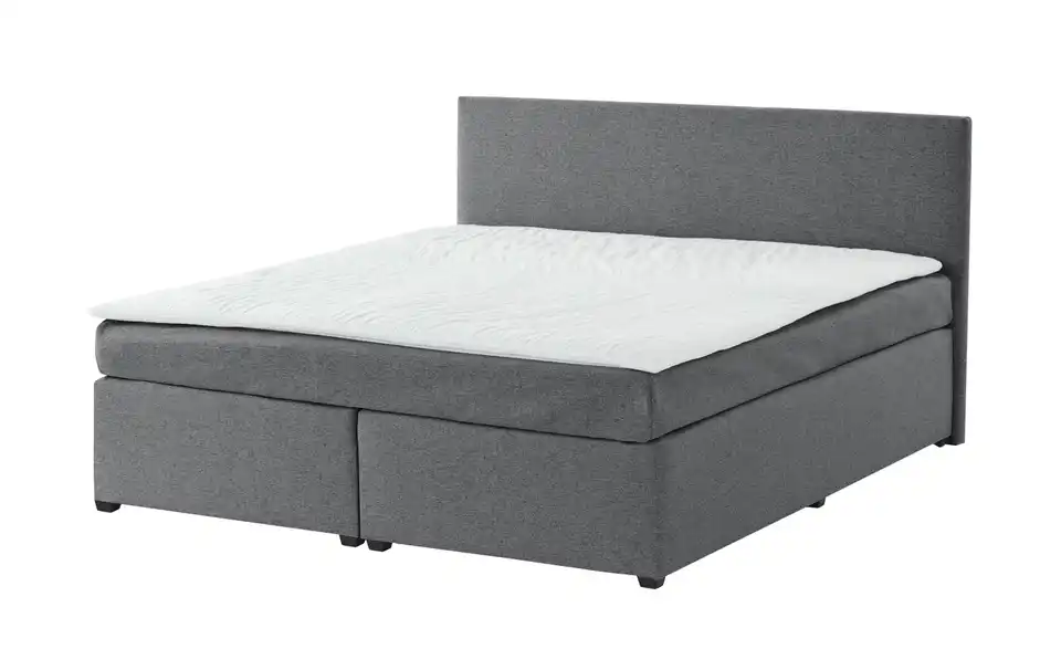 Im Boxspringbett Duke erwarten Sie erholsame Nächte. Das Bett ist mit einem unempfindlichen, Flachgewebe bezogen und lässt sich dadurch gut mit anderen Möbeln kombinieren. Am halbhohen Kopfteil können Sie sich bequem anlehnen. Es ist mit flächenelastischen Bonnellfederkernen ausgestattet. Ein drei Zentimeter dicker Topper mit Schaumstoffkern ist im Lieferumfang enthalten.Lieferung & Versand