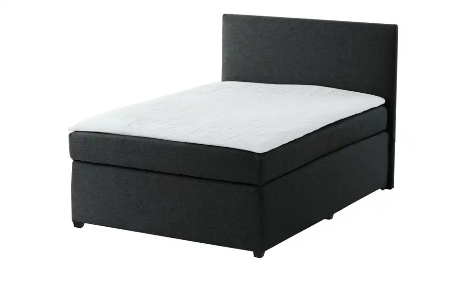 Im Boxspringbett Carlo erwarten Sie erholsame Nächte. Das Bett ist mit einem unempfindlichen, anthrazitfarbenen Flachgewebe bezogen und lässt sich dadurch gut mit anderen Möbeln kombinieren. Am halbhohen Kopfteil können Sie sich bequem anlehnen. Es ist mit flächenelastischen Bonnellfederkernen ausgestattet. Ein drei Zentimeter dicker Topper mit Schaumstoffkern ist im Lieferumfang enthalten.Lieferung & Versand