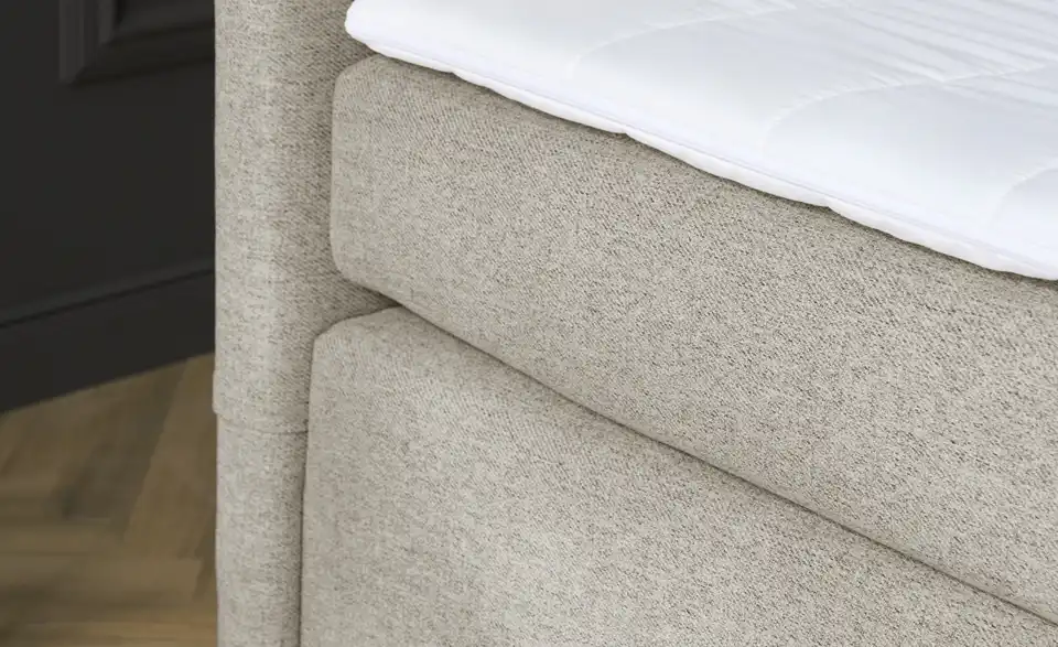 Im Boxspringbett Duke erwarten Sie erholsame Nächte. Das Bett ist mit einem unempfindlichen, Flachgewebe bezogen und lässt sich dadurch gut mit anderen Möbeln kombinieren. Am halbhohen Kopfteil können Sie sich bequem anlehnen. Es ist mit flächenelastischen Bonnellfederkernen ausgestattet. Ein drei Zentimeter dicker Topper mit Schaumstoffkern ist im Lieferumfang enthalten.Lieferung & Versand