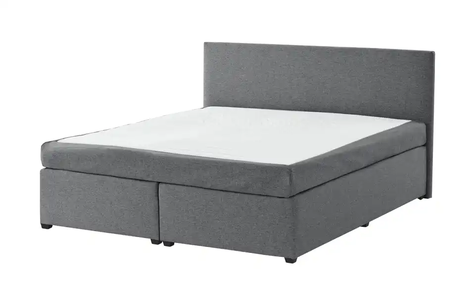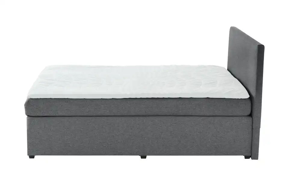 Im Boxspringbett Duke erwarten Sie erholsame Nächte. Das Bett ist mit einem unempfindlichen, Flachgewebe bezogen und lässt sich dadurch gut mit anderen Möbeln kombinieren. Am halbhohen Kopfteil können Sie sich bequem anlehnen. Es ist mit flächenelastischen Bonnellfederkernen ausgestattet. Ein drei Zentimeter dicker Topper mit Schaumstoffkern ist im Lieferumfang enthalten.Lieferung & Versand