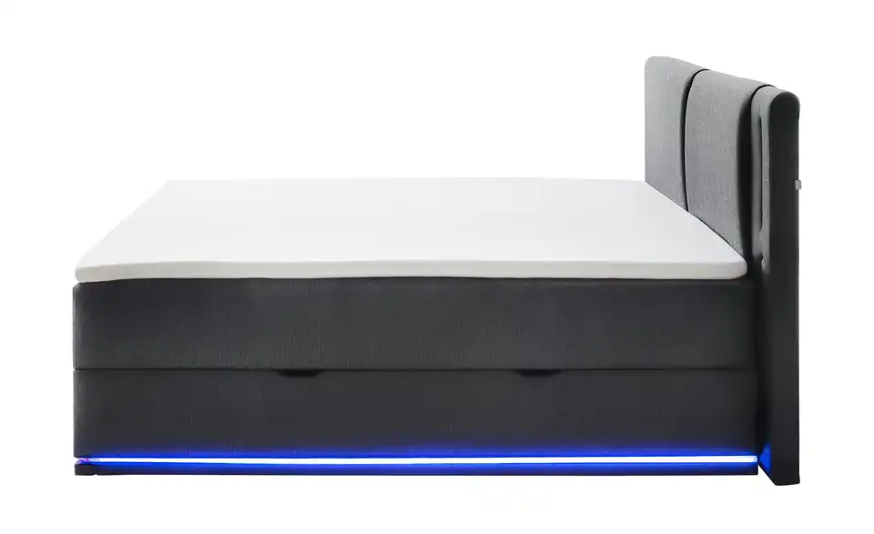 Dieses moderne Bett wirkt mit der LED-Beleuchtung am Kopfteil und am Rahmen schon fast futuristisch. Auch die beiden integrierten USB-Anschlüsse, die ins Kopfteil integriert sind, sind mehr als zeitgemäß. Der Komfort kommt dank der Bonnellfederkerne in Box und Matratze selbstverständlich nicht zu kurz. Außerdem praktisch: Den geräumigen Bettkasten können Sie vom Fußende aus öffnen, aber auch von beiden Bettseiten. Hier finden Bettwäsche oder Schlafzimmerzubehör problemlos Platz.Lieferung & Versand