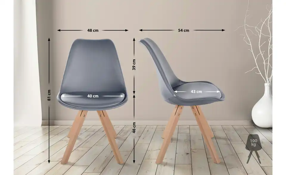 - entspricht DINDIN EN 12520 - Stuhl erfüllt die Anforderungen (Festigkeit, Dauerhaltbarkeit, Sicherheit) an Sitzmöbel für den Wohnbereich.