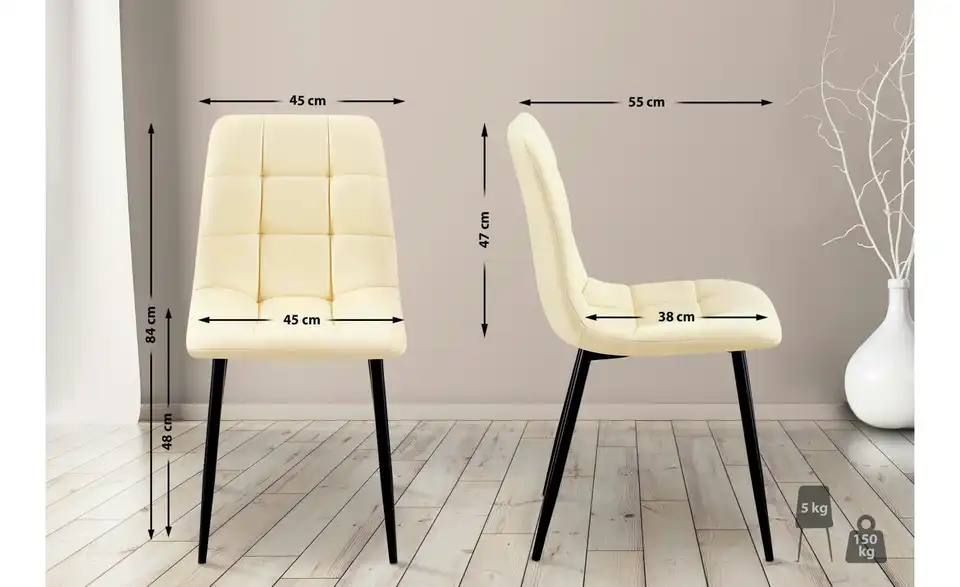 - entspricht DINDIN EN 12520 - Stuhl erfüllt die Anforderungen (Festigkeit, Dauerhaltbarkeit, Sicherheit) an Sitzmöbel für den Wohnbereich.