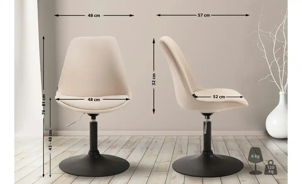 - Ausstattung / FunktionDrehfunktionmanuell höhenverstellbar