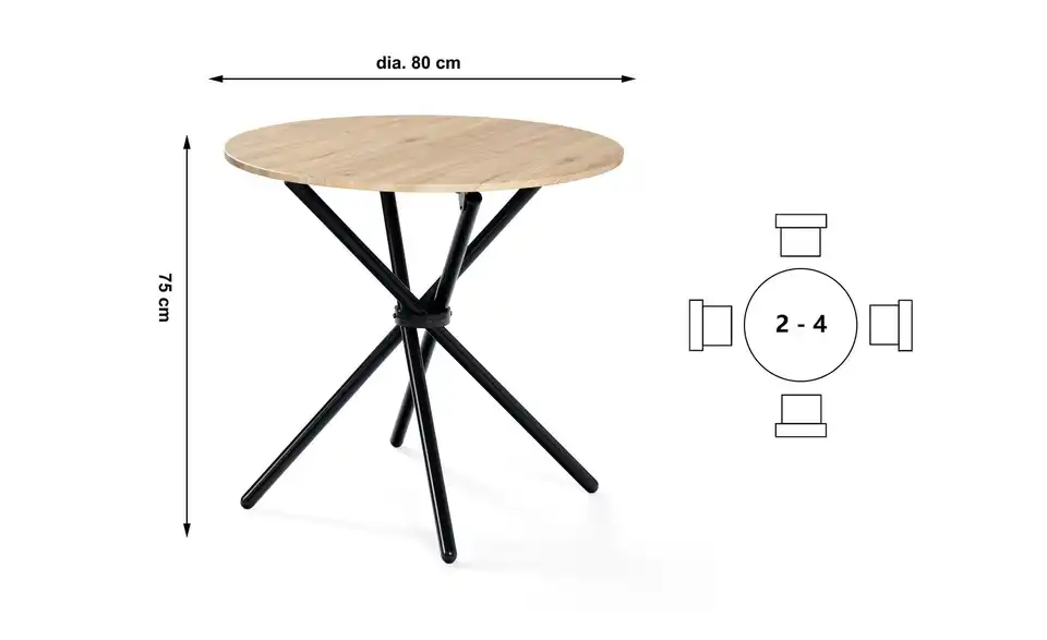 - Kompakte Größe von 80 cm Durchmesser, ideal für kleine Essbereiche
