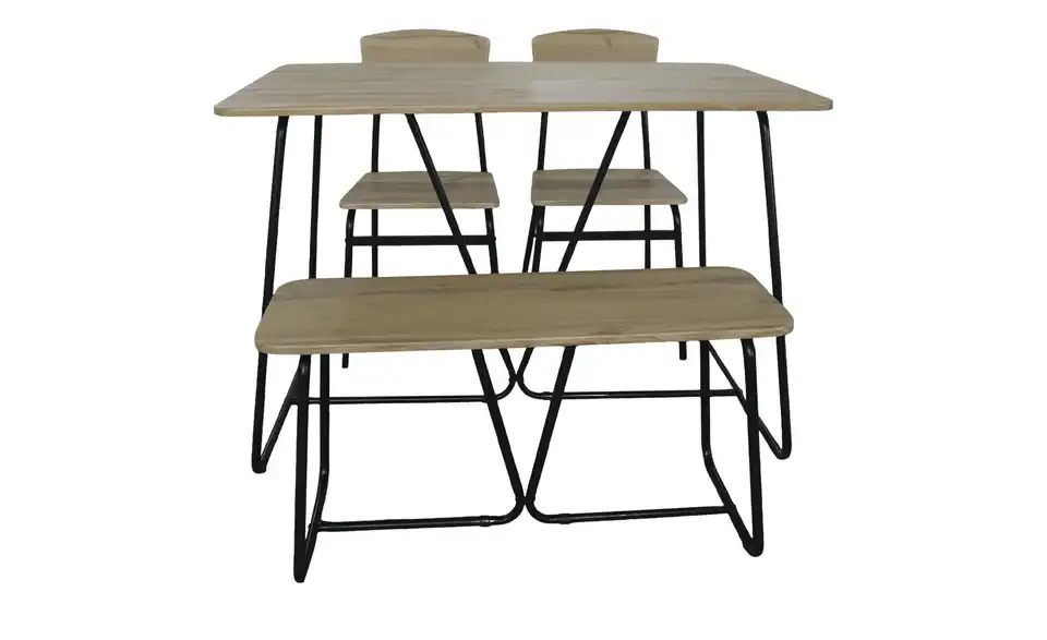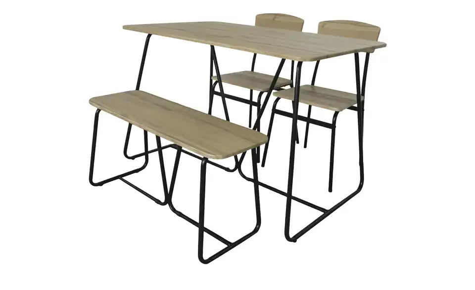 - bestehend ausEsstisch1 Bank2 Stühle