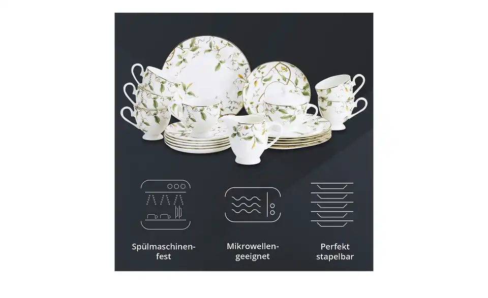 - Lieferumfang / mitgeliefertes Zubehör6x Dessertteller6x Kaffeetasse6x Kaffeeuntertasse1x Zuckerdose1x Milchkännchen