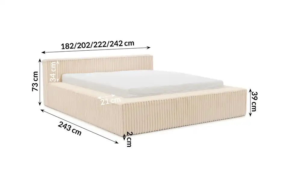 S-STYLE Polsterbett Cord, mit Bettkasten und Lattenrost Noord