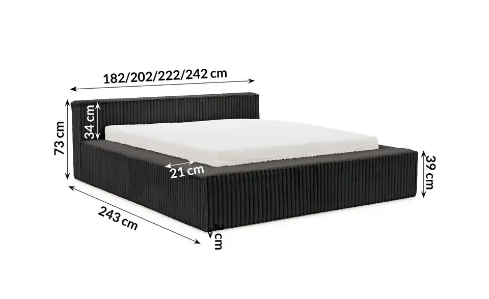 S-STYLE Polsterbett Cord, mit Bettkasten und Lattenrost Noord