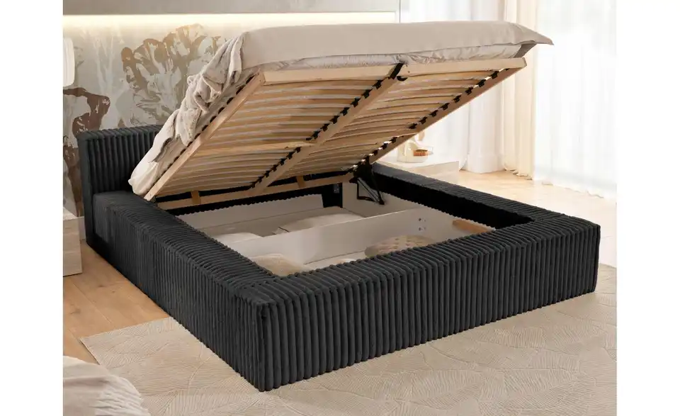 S-STYLE Polsterbett Cord, mit Bettkasten und Lattenrost Noord