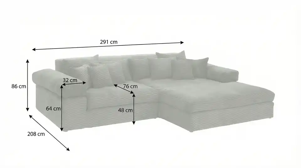 - Gesamtbreite291 cm