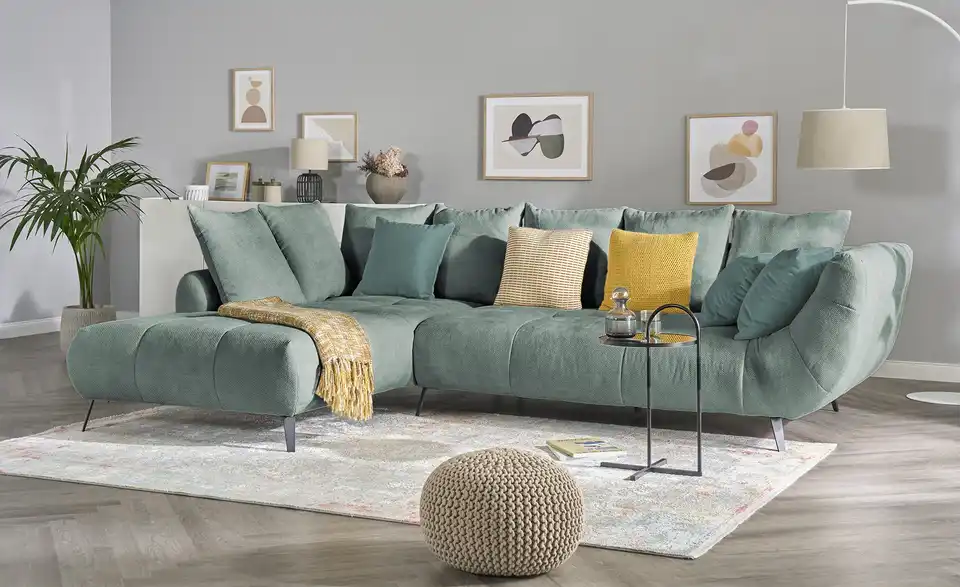 - Lieferumfang / mitgeliefertes Zubehör7 Rückenkissen, 2 Armlehnkissen, 2 Zierkissen