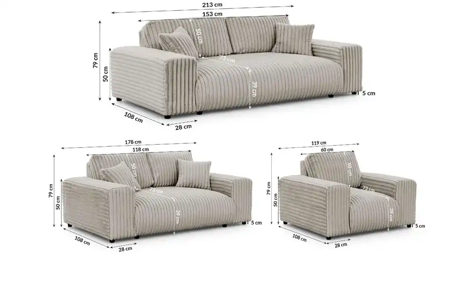 Polstergarnitur 3er-Set