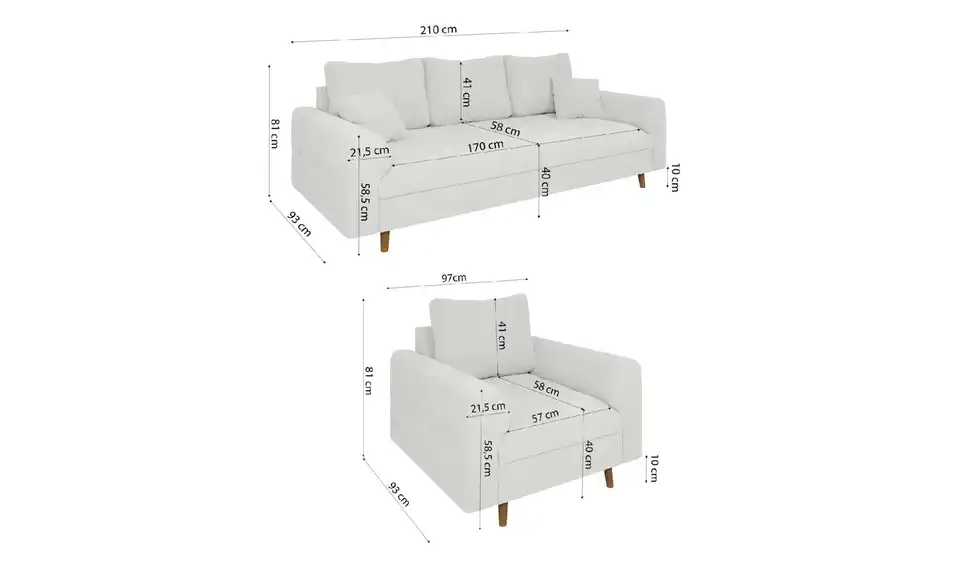 - Sofa 3-sitzig (BxHxT)210 x 93 x 81