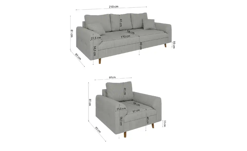 - Sofa 3-sitzig (BxHxT)210 x 93 x 81