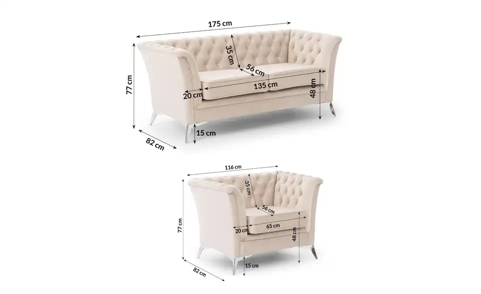 - Lieferumfang / mitgeliefertes Zubehör1 x 2-Sitzer Sofa, Sessel, Montagematerial