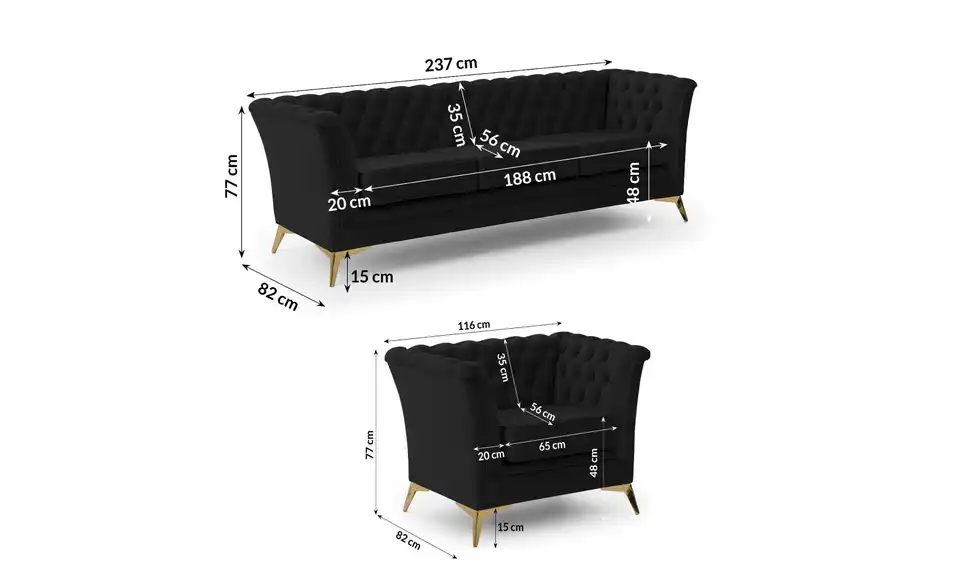 - Lieferumfang / mitgeliefertes Zubehör1 x 3-Sitzer Sofa, Sessel, Montagematerial