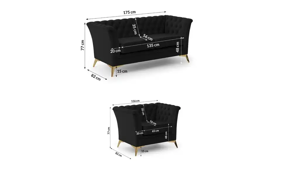 - Lieferumfang / mitgeliefertes Zubehör1 x 2-Sitzer Sofa, Sessel, Montagematerial