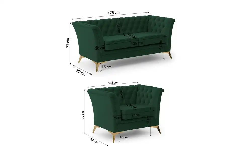 - Lieferumfang / mitgeliefertes Zubehör1 x 2-Sitzer Sofa, Sessel, Montagematerial
