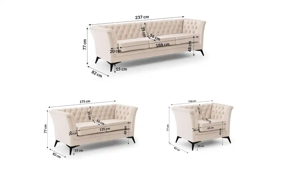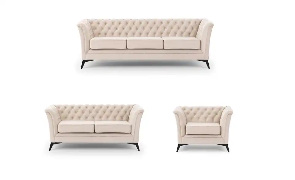 - Lieferumfang / mitgeliefertes Zubehör1 x 3-Sitzer Sofa, 1 x 2-Sitzer Sofa, Sessel, Montagematerial
