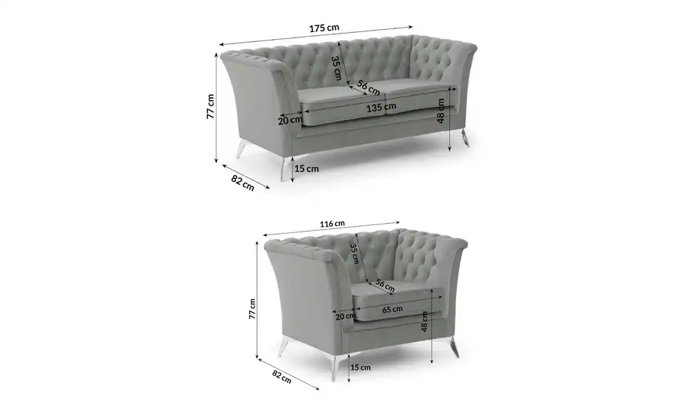 - Lieferumfang / mitgeliefertes Zubehör1 x 2-Sitzer Sofa, Sessel, Montagematerial