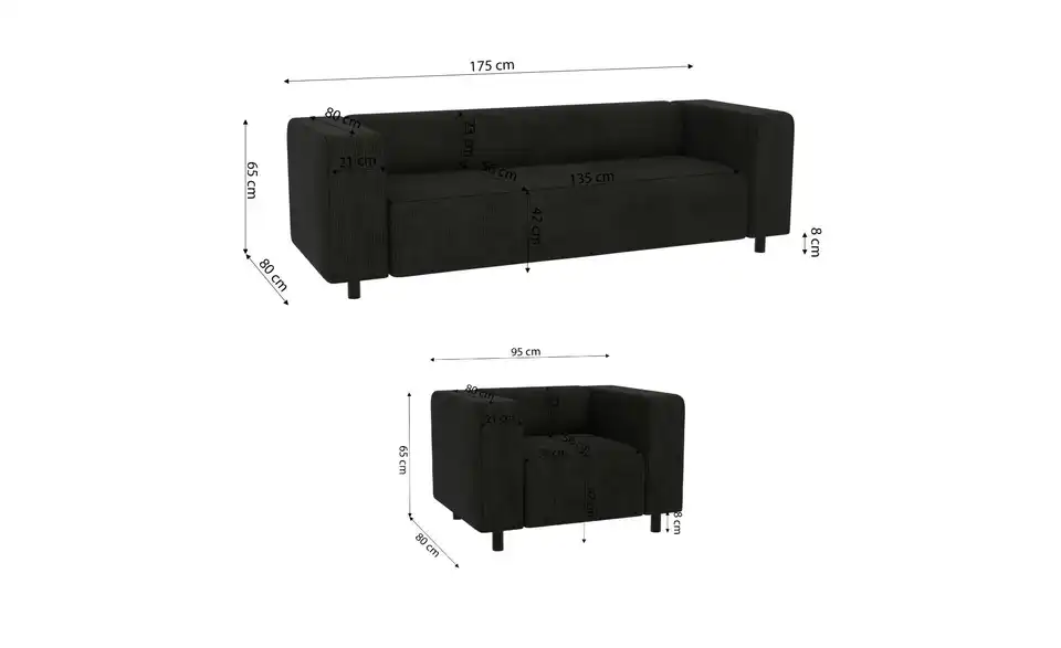 - Sofa 3-sitzig (BxHxT)175 x 80 x 65 cm