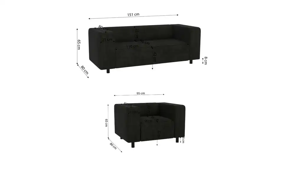 - Sofa 2-sitzig (BxHxT)151 x 65 x 80 cm