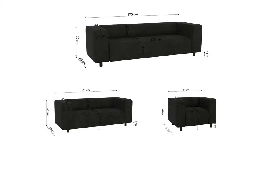 - Lieferumfang / mitgeliefertes Zubehör3-Sitzer Sofa, 2-Sitzer Sofa, Sessel, Montagematerial