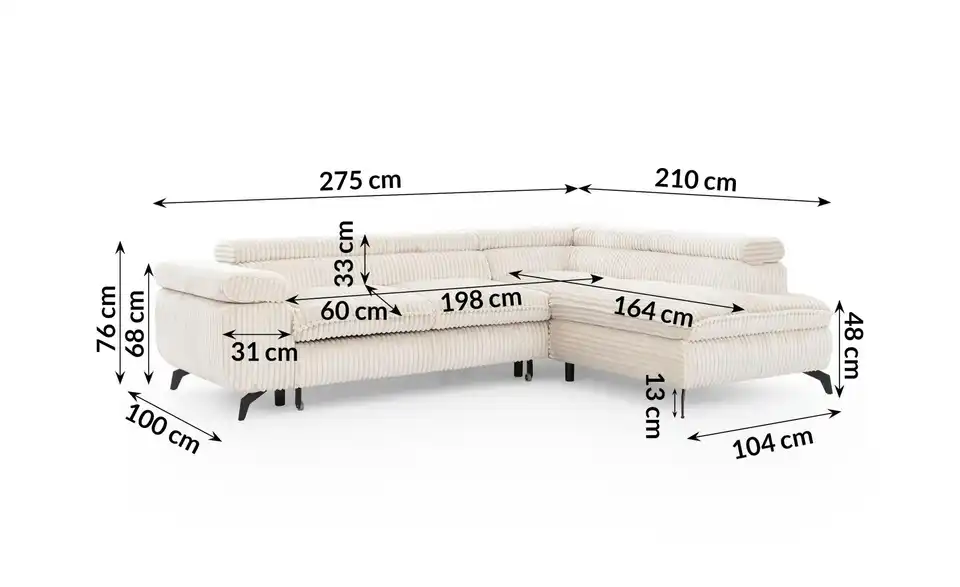 - Ausstattung / FunktionArmlehnenverstellung manuellBettkastenFrei im Raum stellbarpflegeleichtSchlaffunktionverstellbare Kopfstütze
