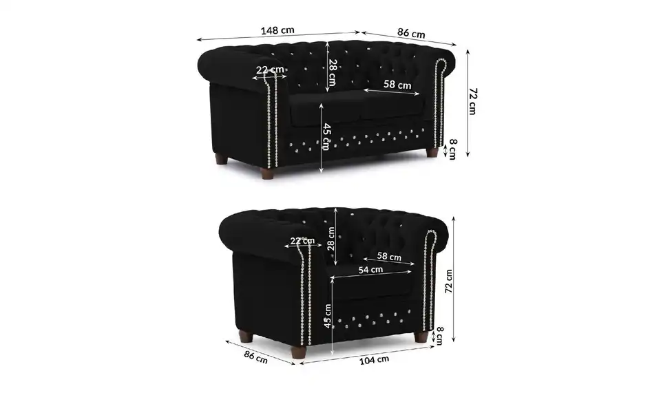- Lieferumfang / mitgeliefertes Zubehör1 x 2-Sitzer Sofa, 1 x Sessel