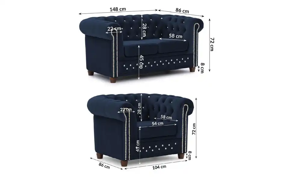 - Sofa 2-sitzig (BxHxT)148x72x86