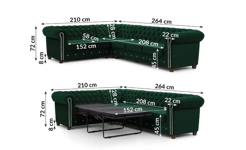 - MontagehinweiseDer Kunde muss nur die Beine an dem Eckteil anschrauben und anschließend die Ottomane mit den Zweisitzer-Teilen zusammensetzen