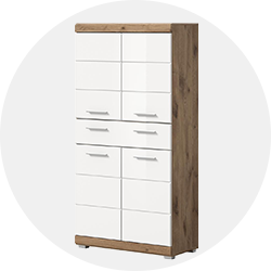 Eine offene Gestaltung kann ein kleines Bad optisch größer wirken lassen. Wählen Sie daher Badschränke mit vielen offenen Fächern oder auch Badregale. Geräumige offene Fächer haben übrigens auch den Vorteil, dass Sie Körperpflegeprodukte und Co. stets schnell bei der Hand haben. Ebenso wichtig ist die Wahl der Farbe bei Wänden, Badmöbeln und Badtextilien. Während zu dunkle Farben einen Raum schnell kleiner und erdrückend wirken lassen kann, ermöglichen helle Farben das Gegenteil: Weiß, Creme und helle Beige- oder Grautöne sowie helle Holzdekore lassen den Raum optisch freundlicher und größer wirken. Noch mehr verstärkt wird dieser Effekt durch Hochglanz-Finishes. Daher heißt unser Dekortipp für das kleine Bad: Schmale, hohe Badmöbel in Weiß Hochglanz.