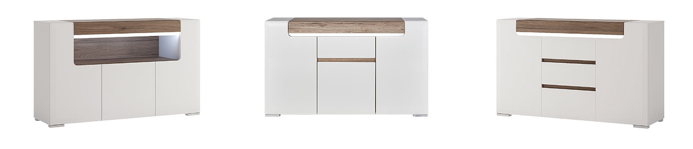 Wählen Sie aus fünf Kommoden-Varianten. Zur Auswahl stehen fünf Design-Ausführungen in zwei Breiten.
