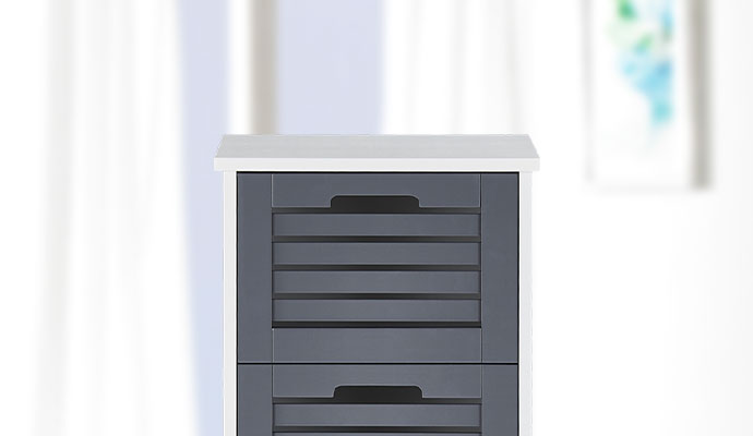 Sie möchten Ihr Bad in eine Wohlfühlzone verwandeln? Dann sind die Badmöbel der Serie Nisser eine optimale Grundlage. Die schicke Farbkombi aus klassischem Weiß und markantem Dunkelgrau sorgt für einen tollen Kontrast. Schübe und Türen sind mit Lamellen versehen, was Nisser eine schöne Landhausnote verleiht. Die Schränke sind durch die Lamellen gut belüftet und der Inhalt gleichzeitig blickgeschützt untergebracht.