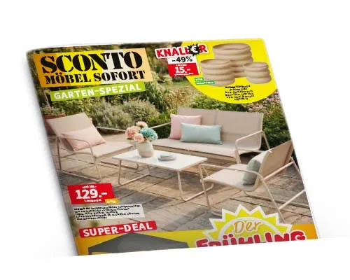 * Sconto gewährt Ihnen 10% Rabatt beim Kauf von Polstergarnituren. Ausgenommen sind in Anzeigen und in Prospekten beworbene Artikel, die unter www.sconto.de einzusehen sind, Kaufgutscheine, Bücher, als stark reduziert gekennzeichnete Artikel, die Artikel der Marken Leonardo, Leifheit, Wesco, Emsa, Schneider Schirme, Metaltex und Ritzenhoff & Breker sowie Top-Preis-Artikel, Lebensmittel, Drogerie und Elektroartikel, Dienstleistungen und Mietgebühren. Alle Preise in Anzeigen und Prospekten sind Endpreise. Nicht mit anderen Aktionen kombinierbar. Keine Barauszahlung möglich. Gültig für Neukäufe von 04.02. bis 01.03.2026.